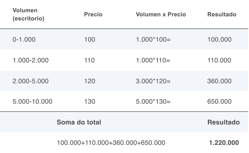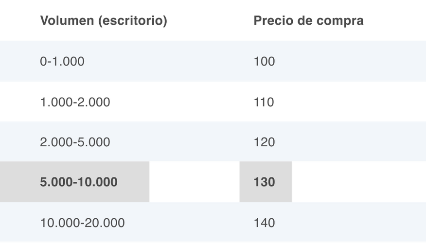 Por ejemplo, si en un primer nivel hay 1000 unidades disponibles y se envía una orden por 1100 unidades, las primeras 1000 unidades usarán el precio del primer nivel, mientras que las 100 unidades restantes usarán el precio del segundo nivel.