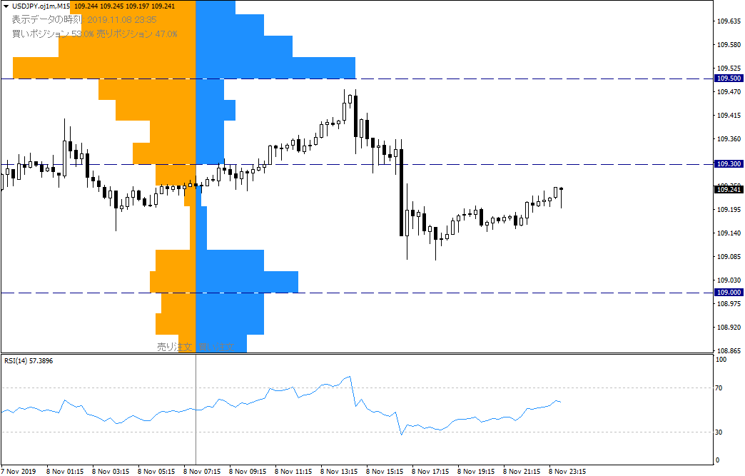 從OANDA掛單數據看,在阻力位109.50上方限損買入掛單很多,價格上升,受到止損買入應超短期內可能增加上升趨勢。