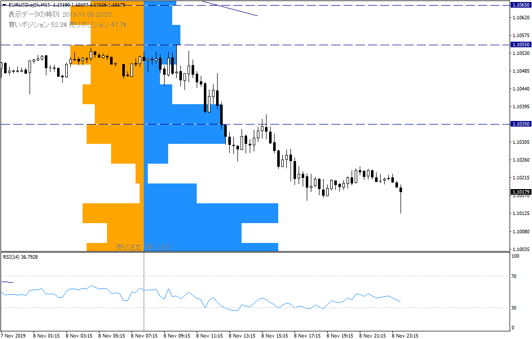 頂部賣出掛單很多,作為阻力位活躍的1.1035附近限損掛單很多,反彈出現時需要注意。