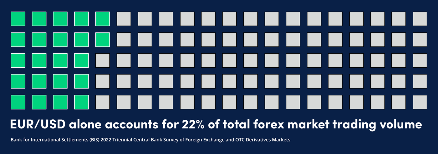 An image showing EUR/USD’s share of total forex market trading volume. Past performance is not indicative of future results. Bank for International Settlements (BIS)¹