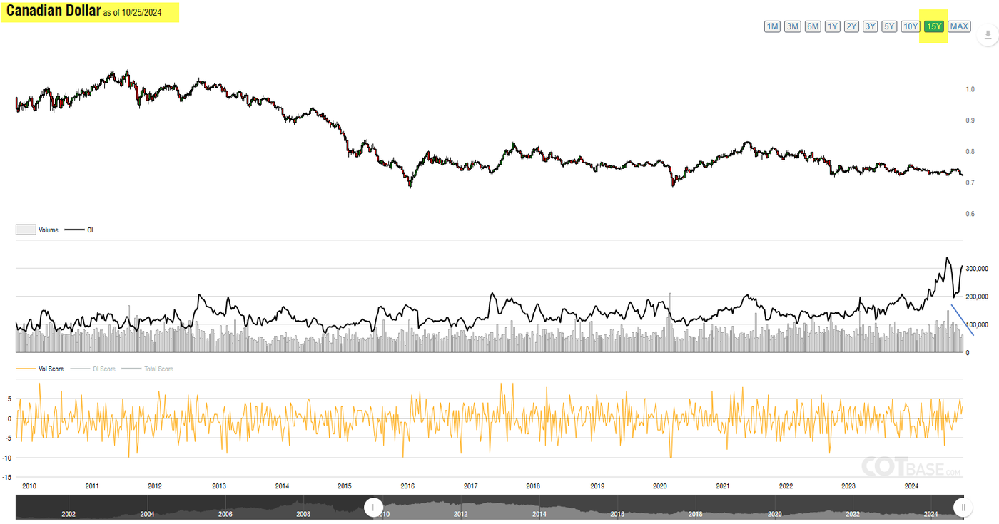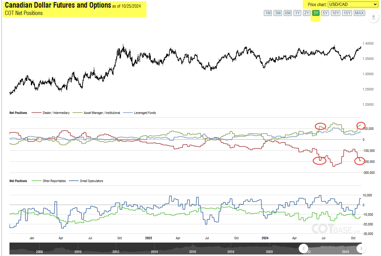 Earlier this year, in July of 2024, the three categories' position levels reached above their all-time highs, creating new all-time extremes for Canadian Dollar position levels. Currently, position levels are inline with the most recent price action, and at an intermediate level seen in June of 2024.