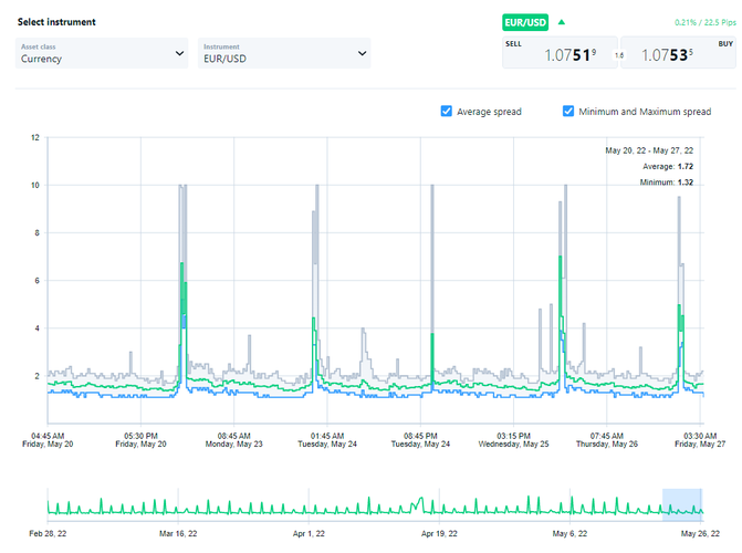 Many charts on our trading platform use the average price, meaning an average between the ‘bid’ and ‘ask’ prices, so they don’t consider the spread. The spread is the difference between a financial product's actual buy and sell price at any given time.