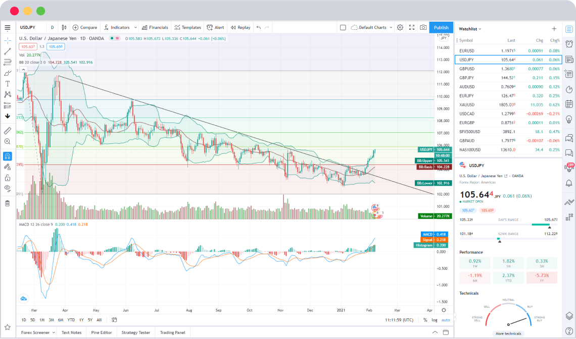 Thanks to OANDA’s partnership with TradingView, you can find all your tools in one place, access multiple online trading platforms, and join the largest financial community on the web.
